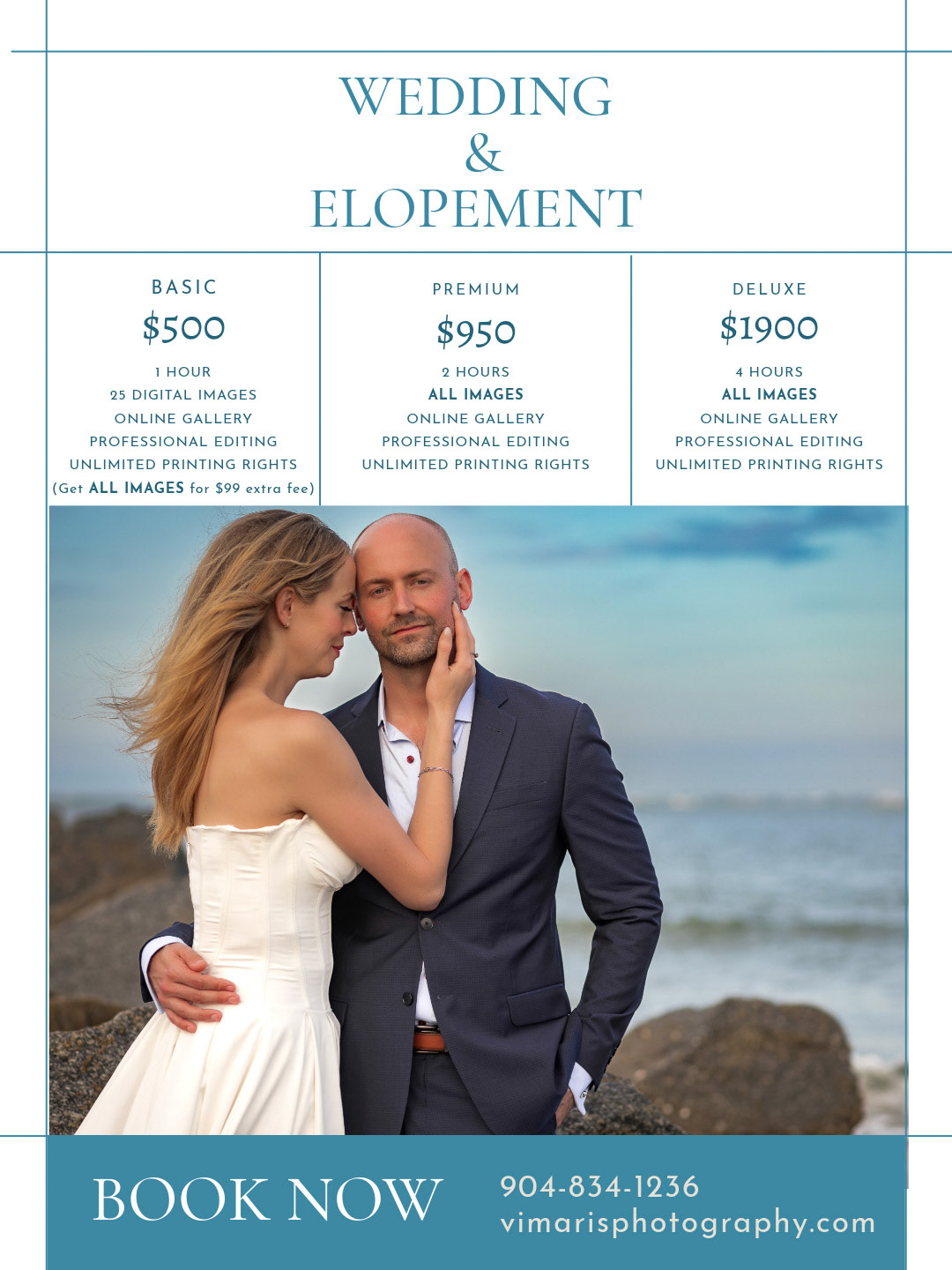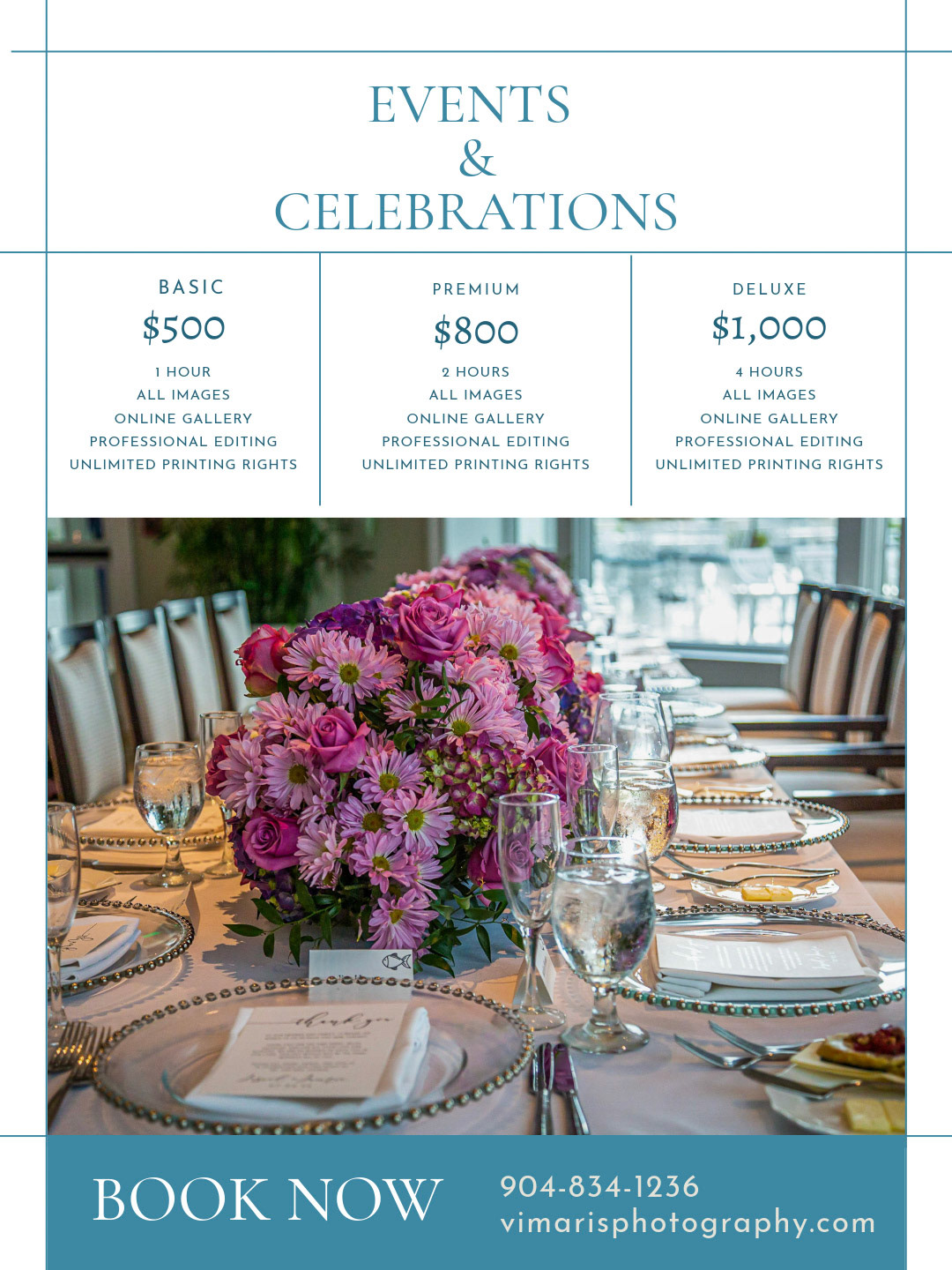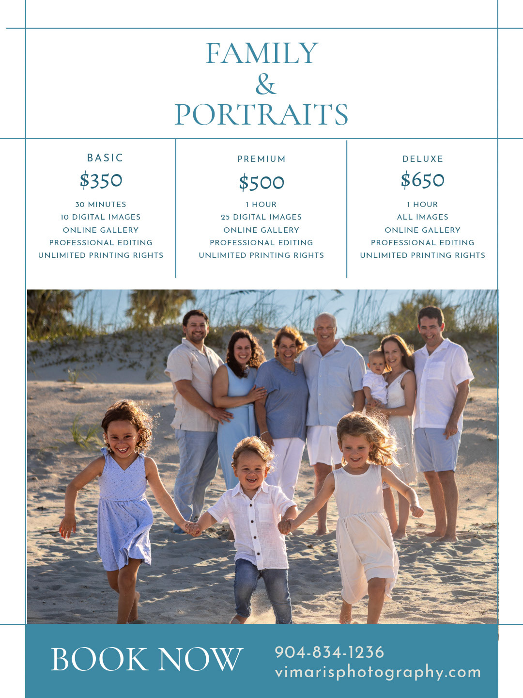 Photo sessions starts at $350. We offer customized packages to fit most budgets. Our most popular package includes one hour session, your favorite 25 professionally edited images and online digital gallery for a total cost of $500.