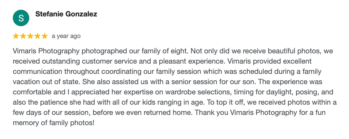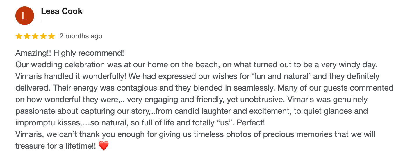 See what our happy clients have to say about their experience, and why they chose Vimaris Photography!